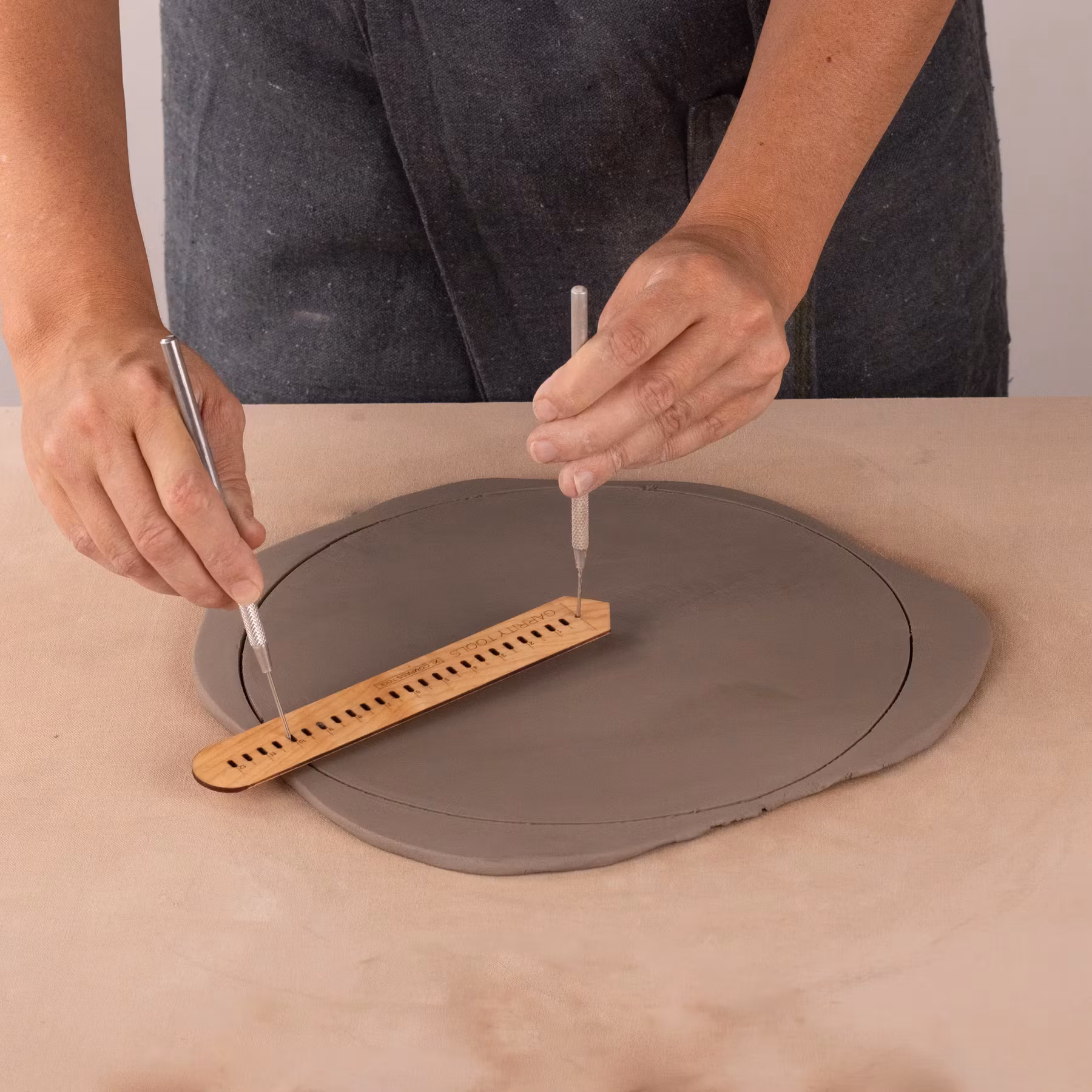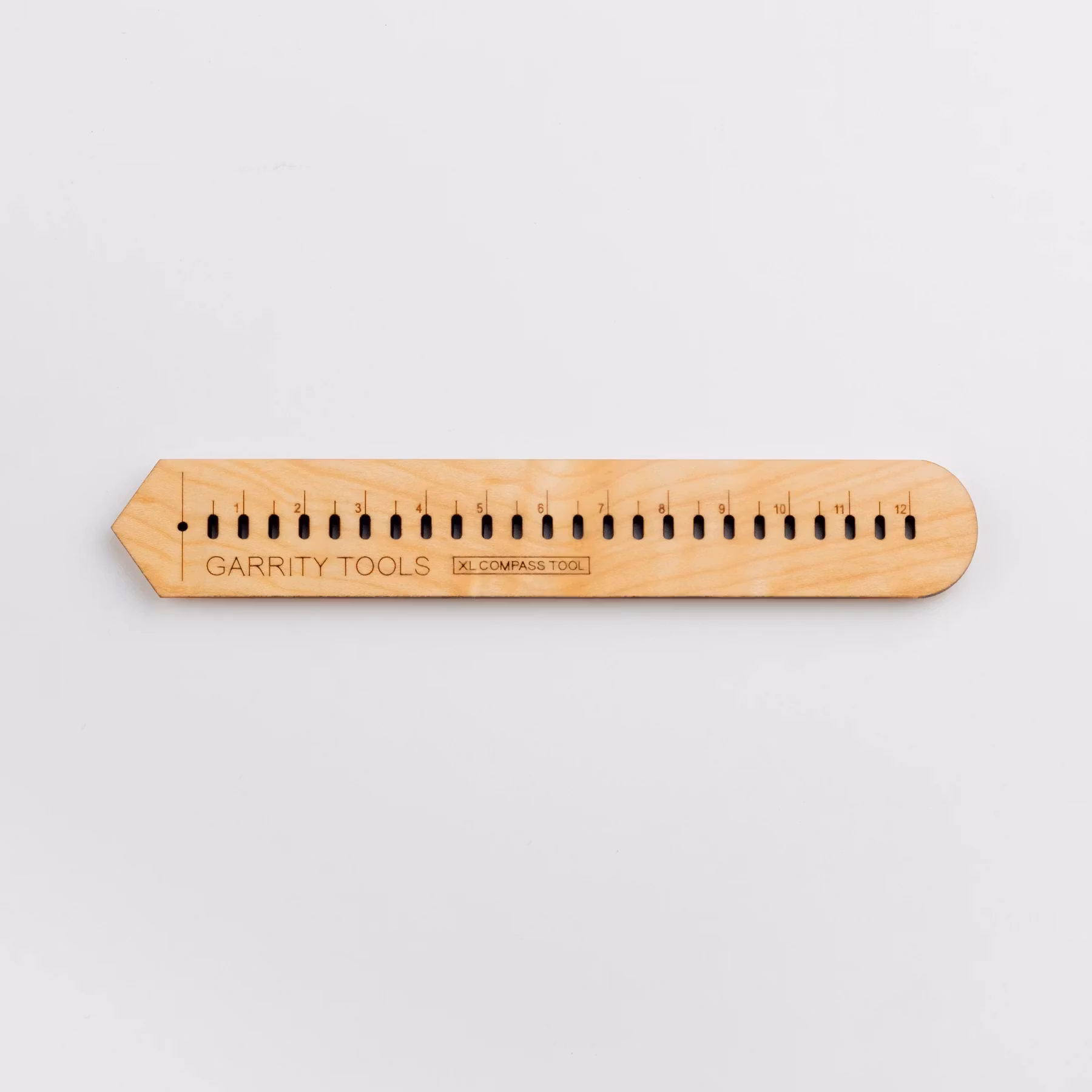 XL Compass används för att skära ut cirklar i 24 olika storlekar, från 1,3 cm till 30,5 cm i diameter. Spetsen, de raka sidorna och runda hörn gör den också användbar vid drejning.