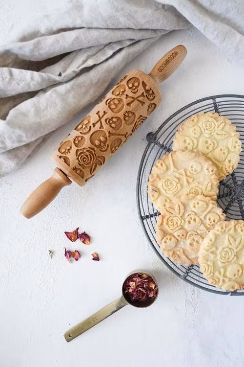 Liten mönstrad kavel att använda till bakning eller keramik.
