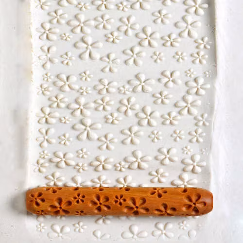 Liten mönstrad handrulle att använda till keramik.